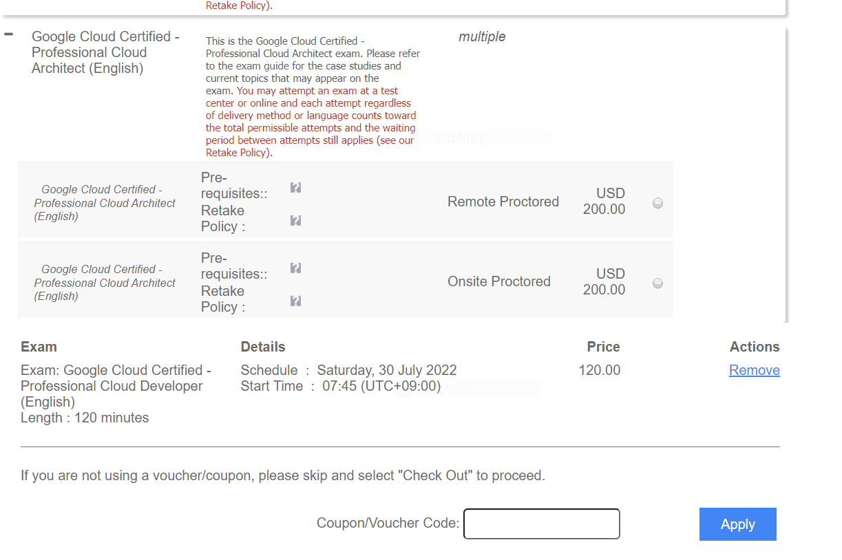이미지에 나와있는 120불에 50퍼센트 쿠폰까지 쓸 수 가 있어서 결론적으로는 60불에 재인증 시험을 치렀습니다!!!!